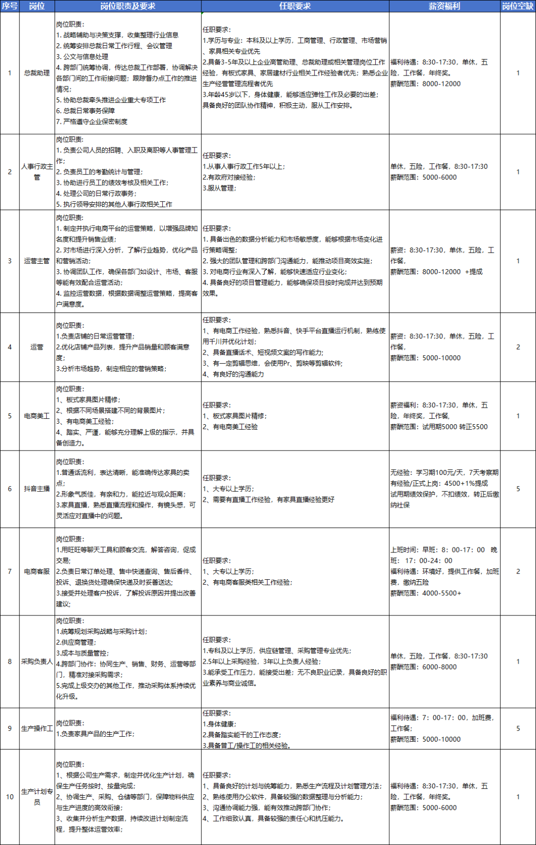 为顺应公司快速发展的战略需求,进一步壮大核心团队力量,现面向社会广纳贤才,诚邀各领域优秀人才加盟。我们将为您提供广阔的发展平台、具有竞争力的薪酬待遇与完善的职业晋升体系,与您携手并肩,共创莱亦家家居更加辉煌的未来!