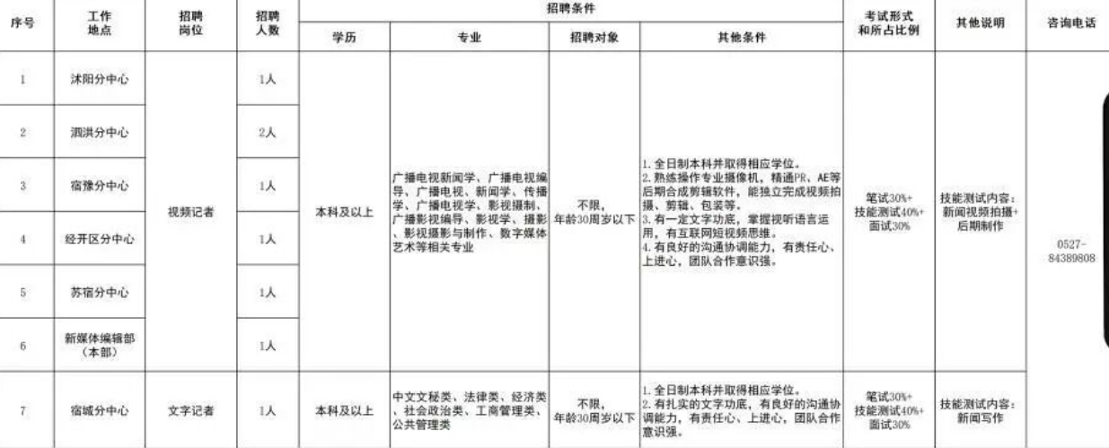 宿迁市新闻传媒中心(市传媒集团)面向社会公开招聘记者8名